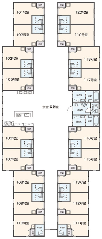 | 付帯設備 | 車いす対応・トイレ洗面設備・収納設備・冷暖房設備・緊急通報システム・フリーWifi・各種見守りセンサー(心拍・呼吸睡眠状況把握システム・見守りカメラ) |